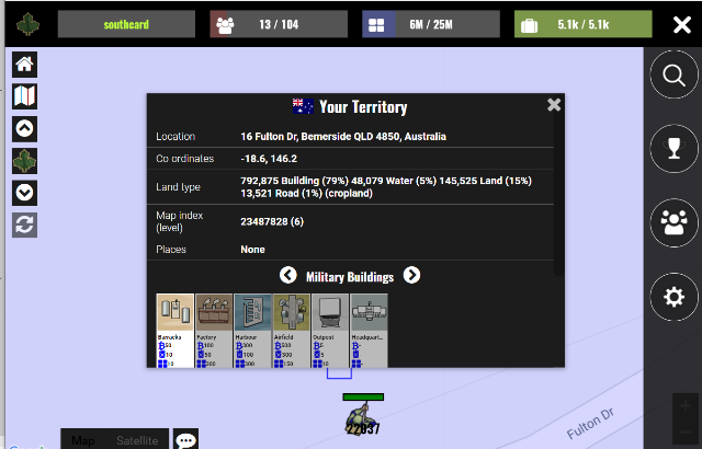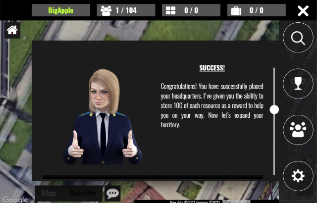 New players in W:GA can place their headquarters on any unoccupied address in the world.